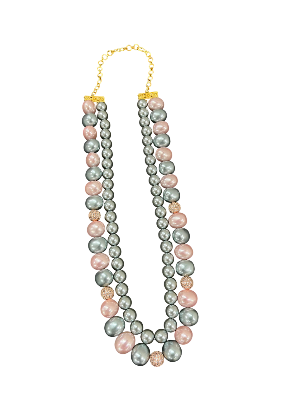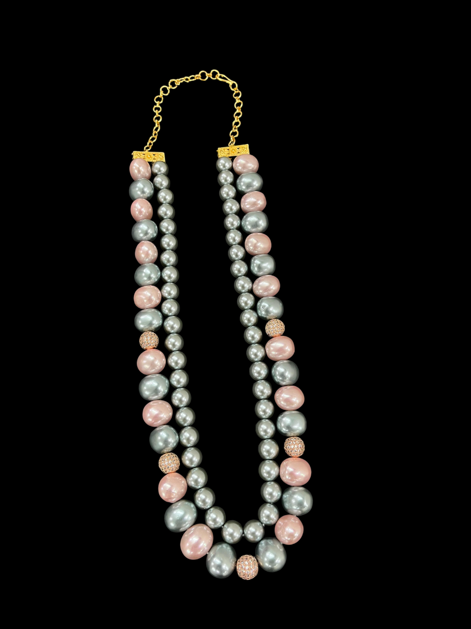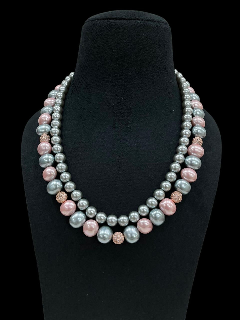 Elegant Multi-Strand Pearl Necklace Pink and Grey Shell Pearl Double Layer Statement Jewellery for stylish womenElegant Multi-Strand Pearl Necklace Pink and Grey Shell Pearl Double Layer Statement Jewellery for stylish women