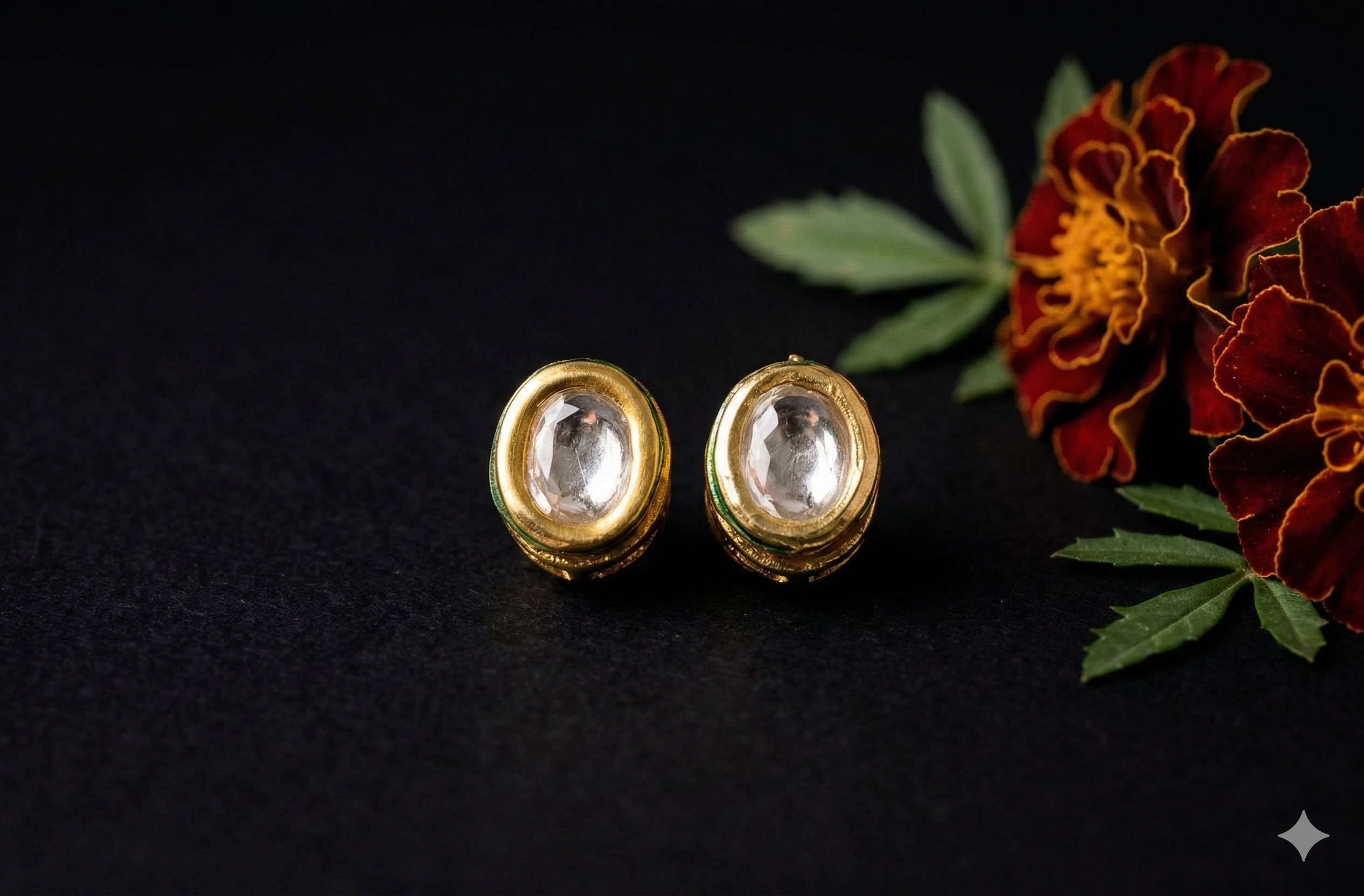 Gold Plated Oval Kundan Stud Earring For Women Gift For Her