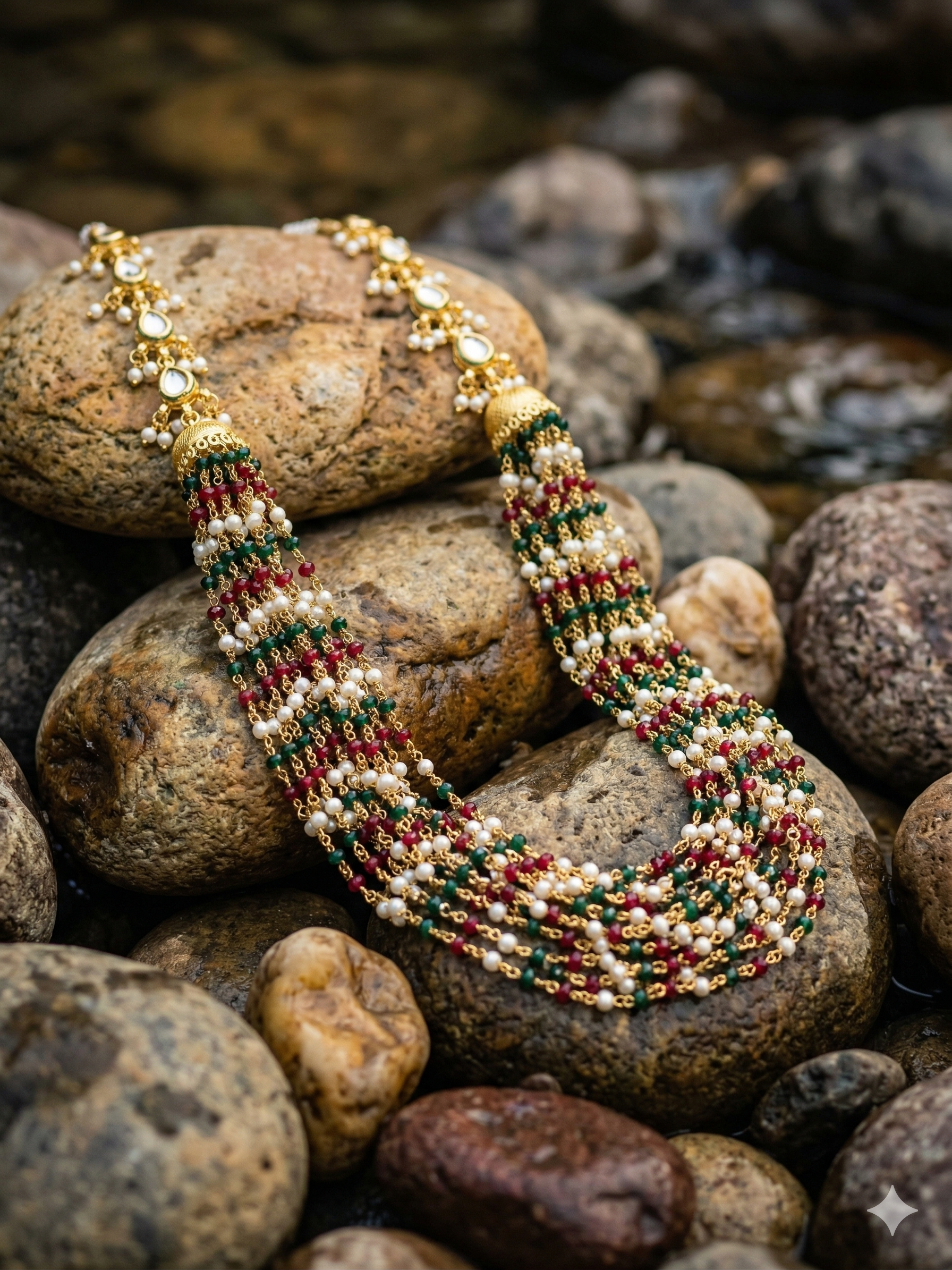• Elegant Multi-Layered Design: This pearl beaded necklace set features multiple layers of lustrous pearls, creating a sophisticated and timeless look that effortlessly enhances any ensemble.
