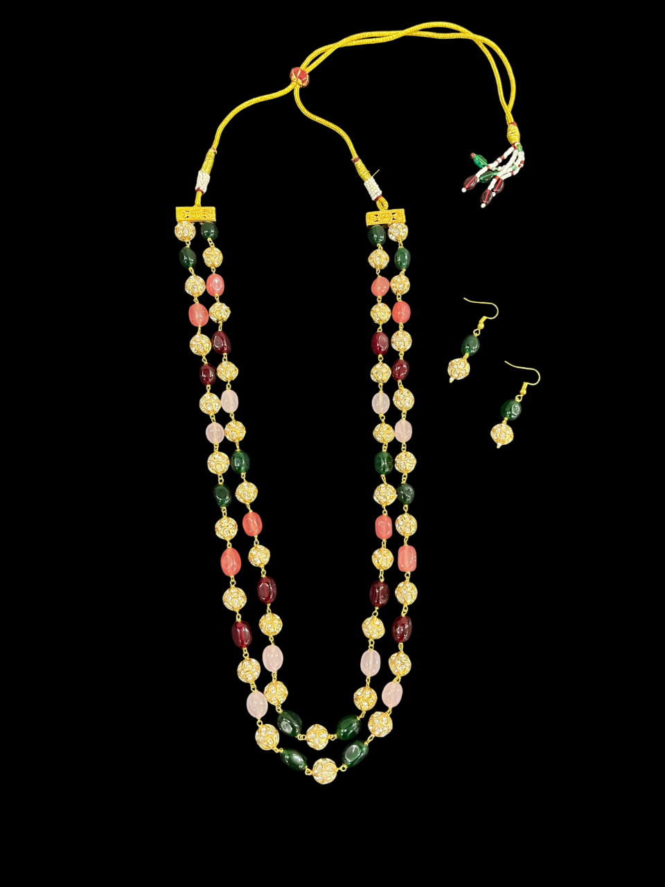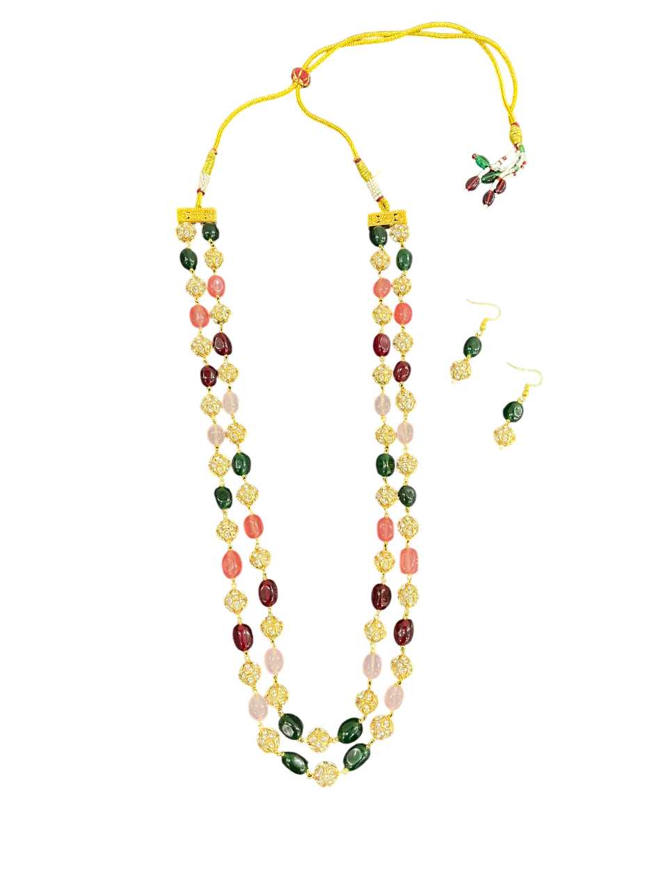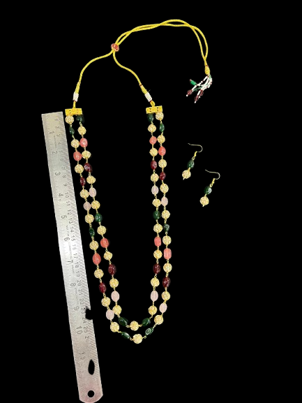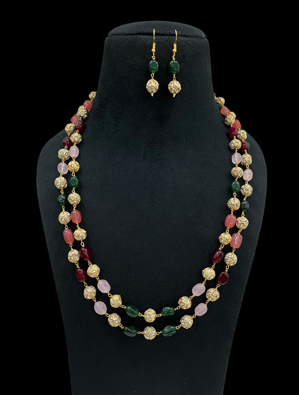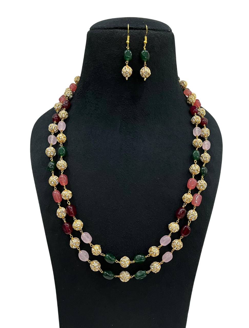 - This stunning multicolour beaded necklace set for women features an elegant double-strand design that effortlessly elevates any outfit.