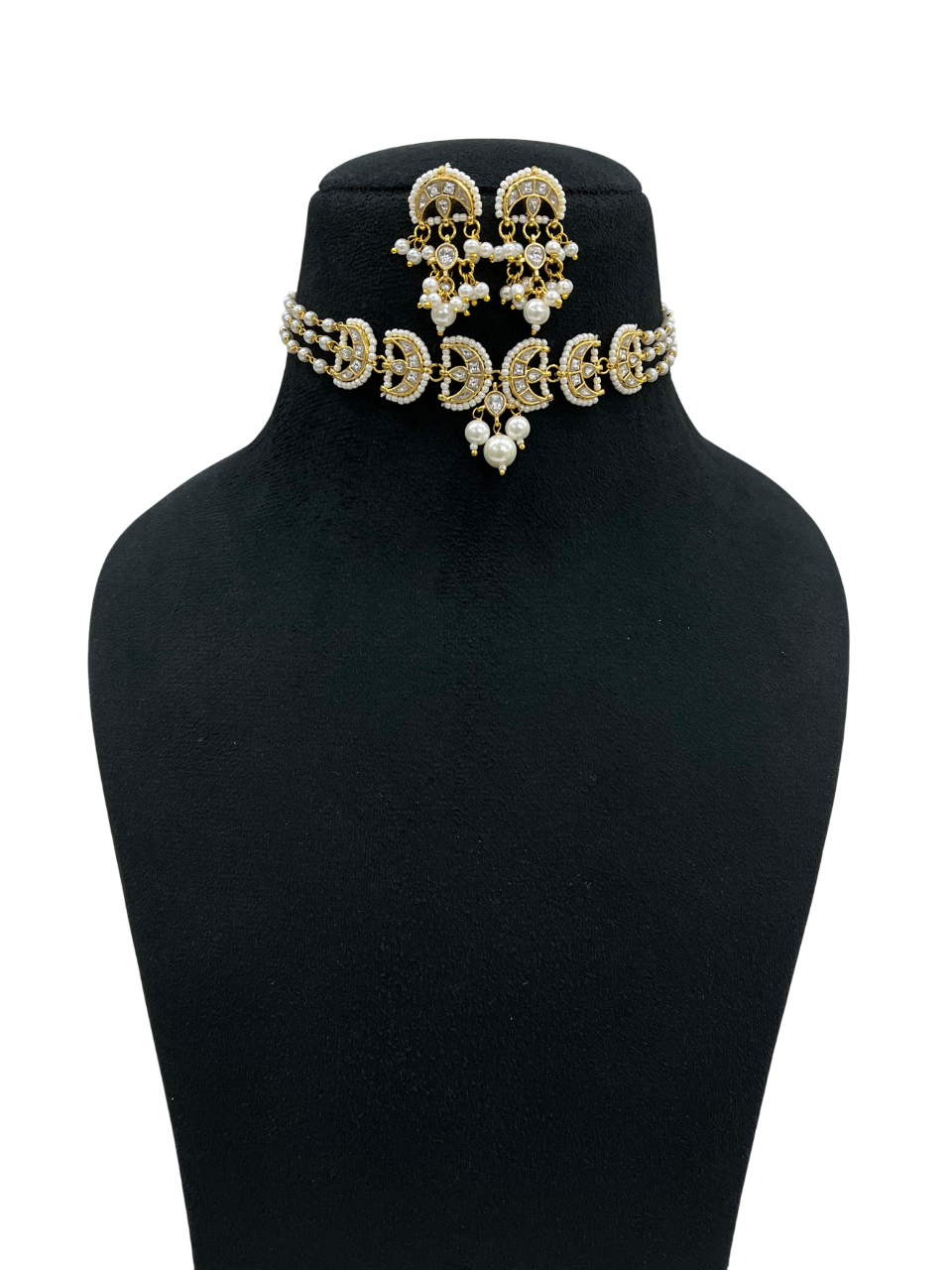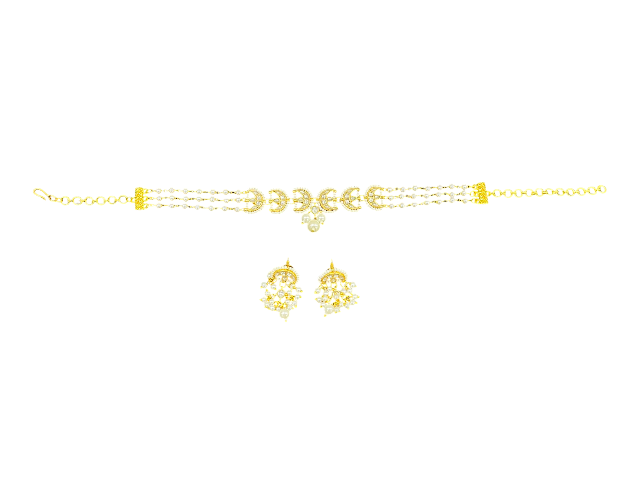 Premium Traditional Chain Choker Necklace Set with Pearls and Earrings For Stylish Women